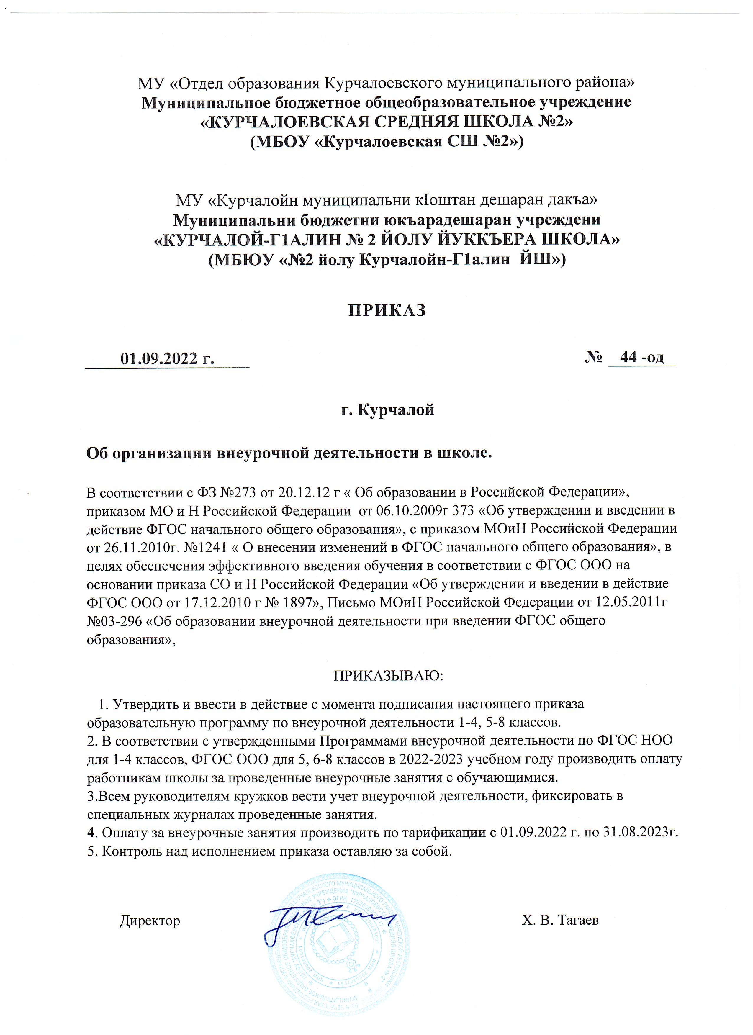 Приказ № 109-од от 12 мая 2023 г. О закреплении государственных и муниципальных бюджетных общеобразовательных организации за конкретными территориями Курчалоевского муниципального района