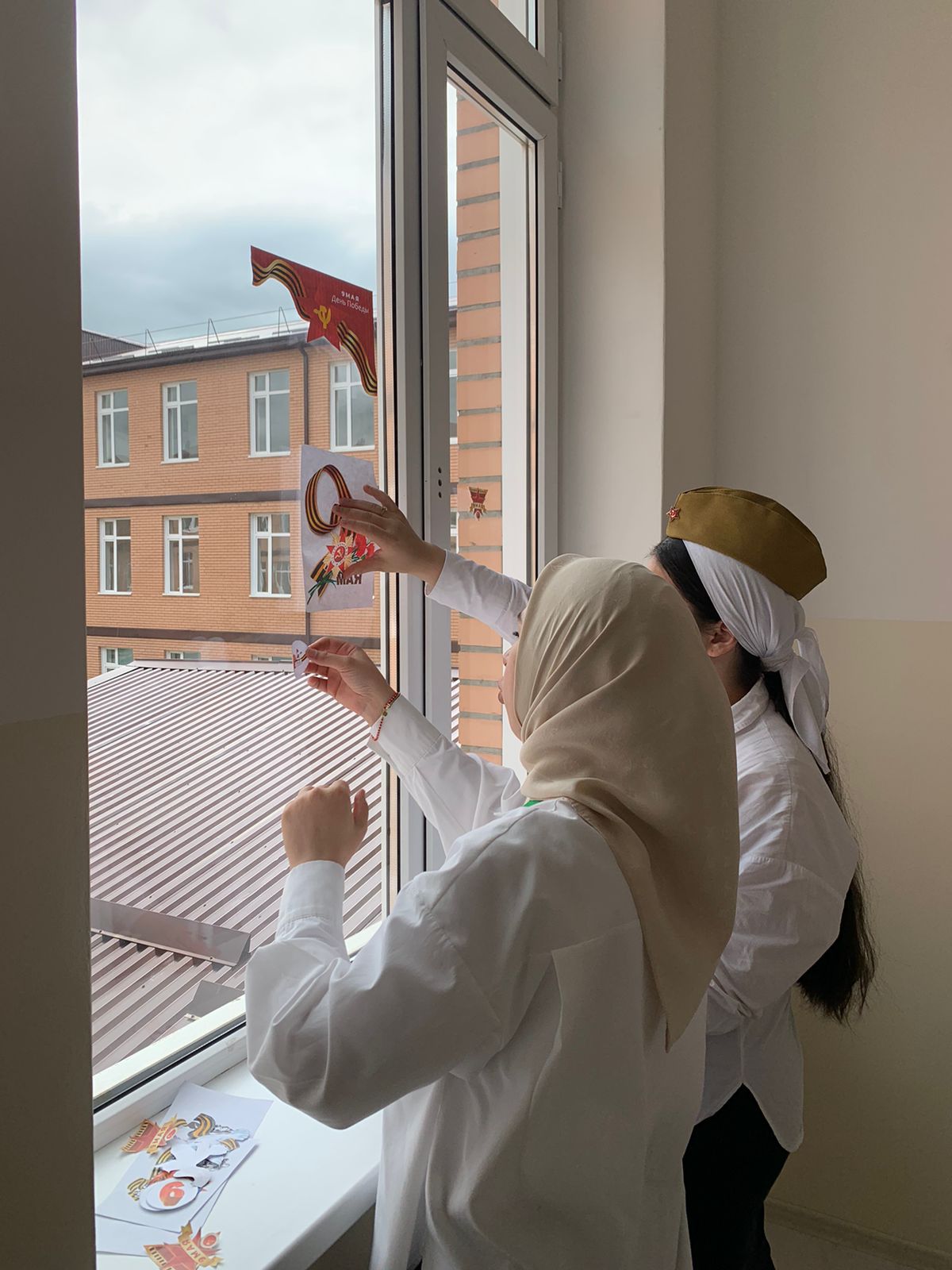В МБОУ "Курчалоевская СШ №2" в предверии 78-й годовщины Победы в Великой Отечественной войне активистами РДДМ "Движение Первых" проведена акция "Окна Победы".