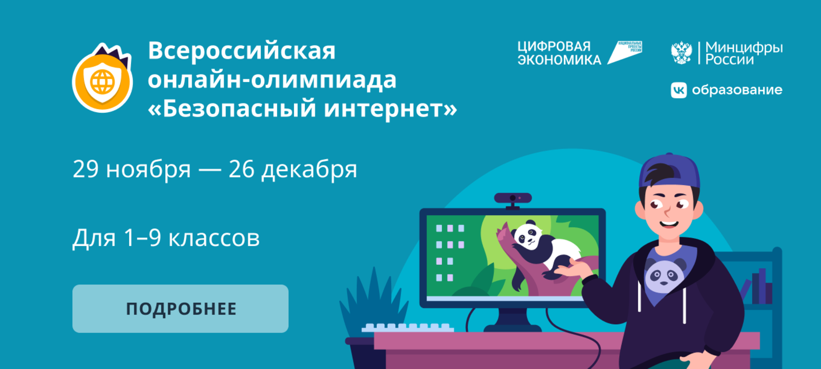 01.12.2022Всероссийская онлайн-олимпиада «Безопасный интернет» для учеников 1-9 классов пройдёт с 29 ноября по 26 декабря 2022 года. Олимпиада проводится образовательной онлайн-платформой Учи.ру и компанией VK при поддержке национального проекта «Цифровая экономика» и Минцифры России. Участие для всех школьников из всех регионов бесплатное.