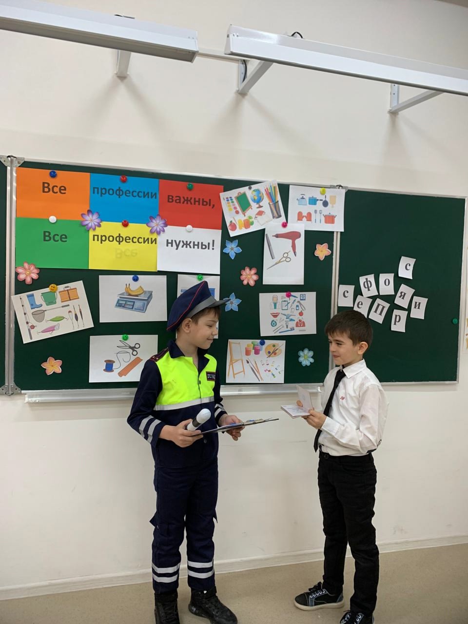 На занятии ученики 4 «А» класса попробовали себя в роли разных профессий, составляли небольшие рассказы «Кем я буду, когда вырасту?» также с ними была проведена беседа о профессии их родителей.