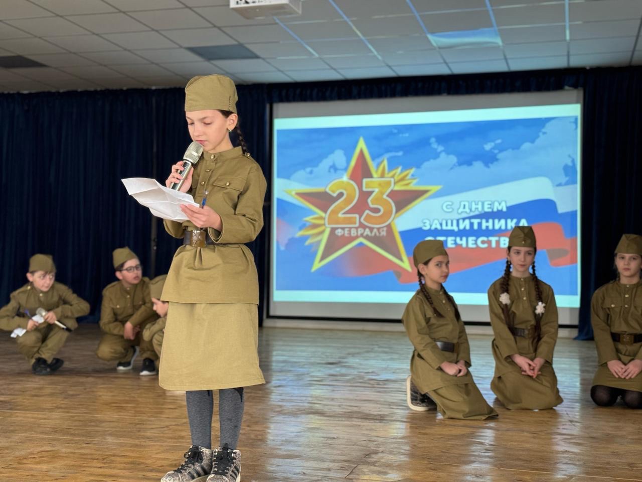 • Концертная программа с выступлением учащихся (песни, стихи, театрализованные сценки).День защитника Отечества – это праздник мужества, чести и патриотизма. Он напоминает о важности защищать Родину, уважать её историю и подвиги героев. Этот день объединяет всех, кто стоит на страже мира и безопасности, и вдохновляет молодое поколение на любовь к своей стране и готовность защищать её. Мадина Хожахмедовна открыла свое мероприятие с рассмотрения истории Дня Защитников Отечества и его значения. А также с подчеркивания роли армии в защите страны и обеспечении безопасности. Далее рассказывала о трудностях и подвигах военной службы. Основной мыслью мероприятия, посвященного Дню Защитников Отечества в школе, является поддержка и признание значимости службы защитников, а также воспитание патриотизма и уважения к военной службе среди учеников. Мероприятие направлено на то, чтобы учащиеся осознали важность службы в армии, чтобы поняли исторический контекст праздника, а также выразили свою благодарность и уважение к защитникам Отечества. Мадина Хожахмедовна с учениками обсудила вопросы про военную службу и патриотизм. В конце мероприятия они выступили с собственными стихами и песнями, посвященными теме защитников Отечества. Эти моменты сделали мероприятие насыщенным, интересным и запоминающимся для детей, стимулируя их участие и вовлеченность в события. Также, классные руководители провели урок мужества на тему: «Защитники Отечества».Ученики проявили активность, внимание и творческий подход, что способствовало успешному достижению целей. Отзывы наших учеников свидетельствуют о положительном восприятии мероприятия и его значимости в формировании патриотических чувств среди сверстников.Мероприятие прошло в торжественной и патриотической атмосфере. Участники проявили большой интерес, активно участвовали в конкурсах и беседах, выразили уважение к ветеранам и военнослужащим. Праздник способствовал укреплению духа патриотизма и уважения к защитникам Родины.