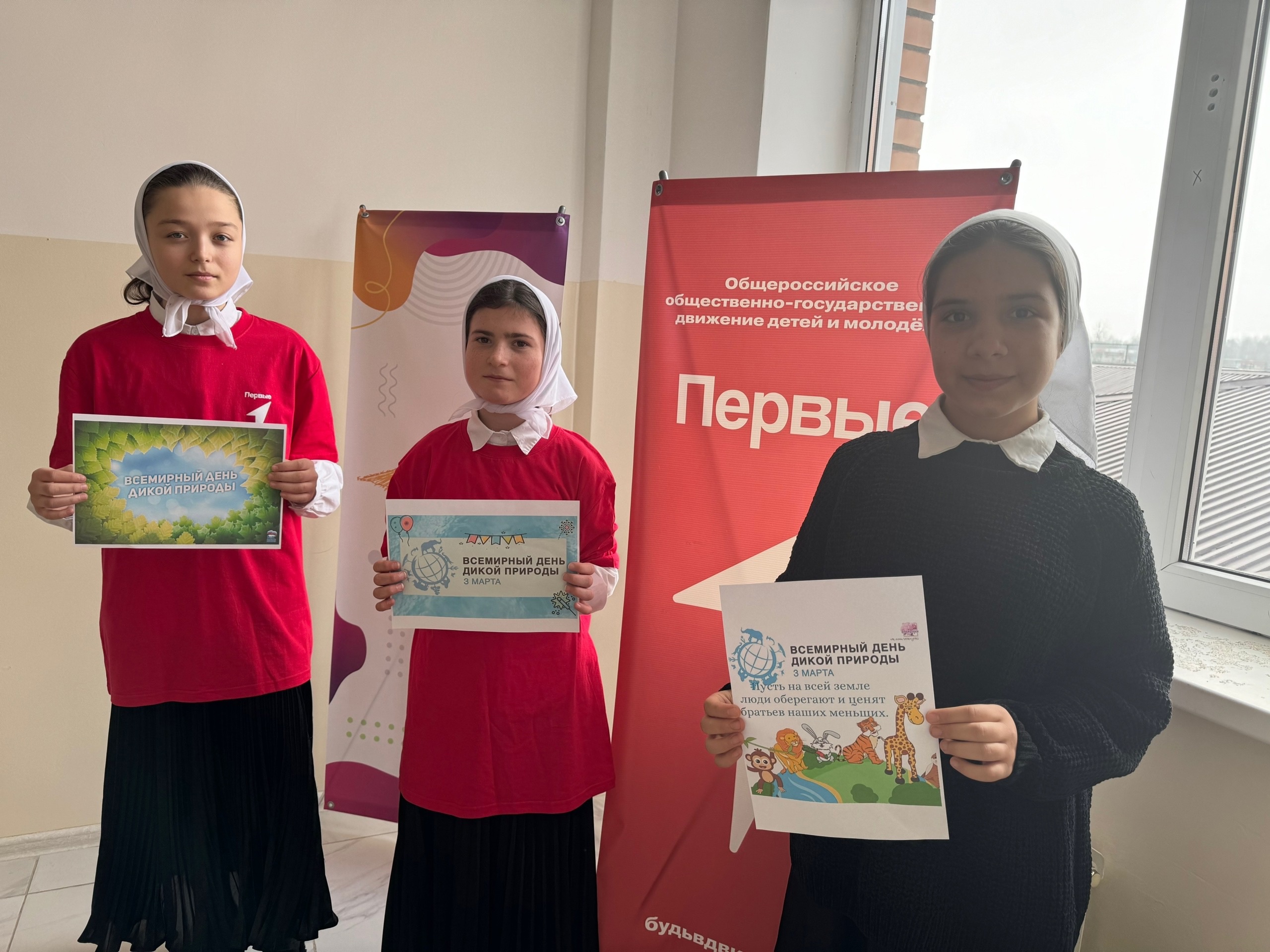 03.03.2025Дорогие друзья!В рамках всероссийского проекта «Волонтерские отряды Первых», первичное отделение МБОУ «Курчалоевская СШ2» провели акцию, посвященная "Всемирному дню дикой природы". Организатором выступила советник директора Эльмурзаева Мадина Хожахмедовна. Всемирный день дикой природыпредоставляет возможность обратить внимание на многообразие и красоту проявлений дикой фауны и флоры, а также помогает повысить информированность о получаемой человеком пользе от занятий природоохранной деятельностью.Цель: обратить внимание людей на многообразие видов в дикой природе, призвать к бережному и осознанному отношению к окружающей нас среде. Не забывать, что на сегодняшний день тысячи растений и животных находятся на грани уничтожения и требуют нашей охраны и изучения.В рамках акции участники провели на базе первичного отделения Движения Первых тематические мероприятия: классные часы, беседы, лекции, презентации, обсуждения, дискуссии, создание трафаретов диких животных, посвященные охране дикой природы субъекта Российской Федерации.Приглашаем всех, кто еще не с нами, присоединиться к нашему первичному отделению! Вы сможете развивать личные навыки, участвовать в интересных мероприятиях и стать частью дружной команды. Все вместе мы можем сделать больше!#Движениепервых #МиллионДобрыхДел