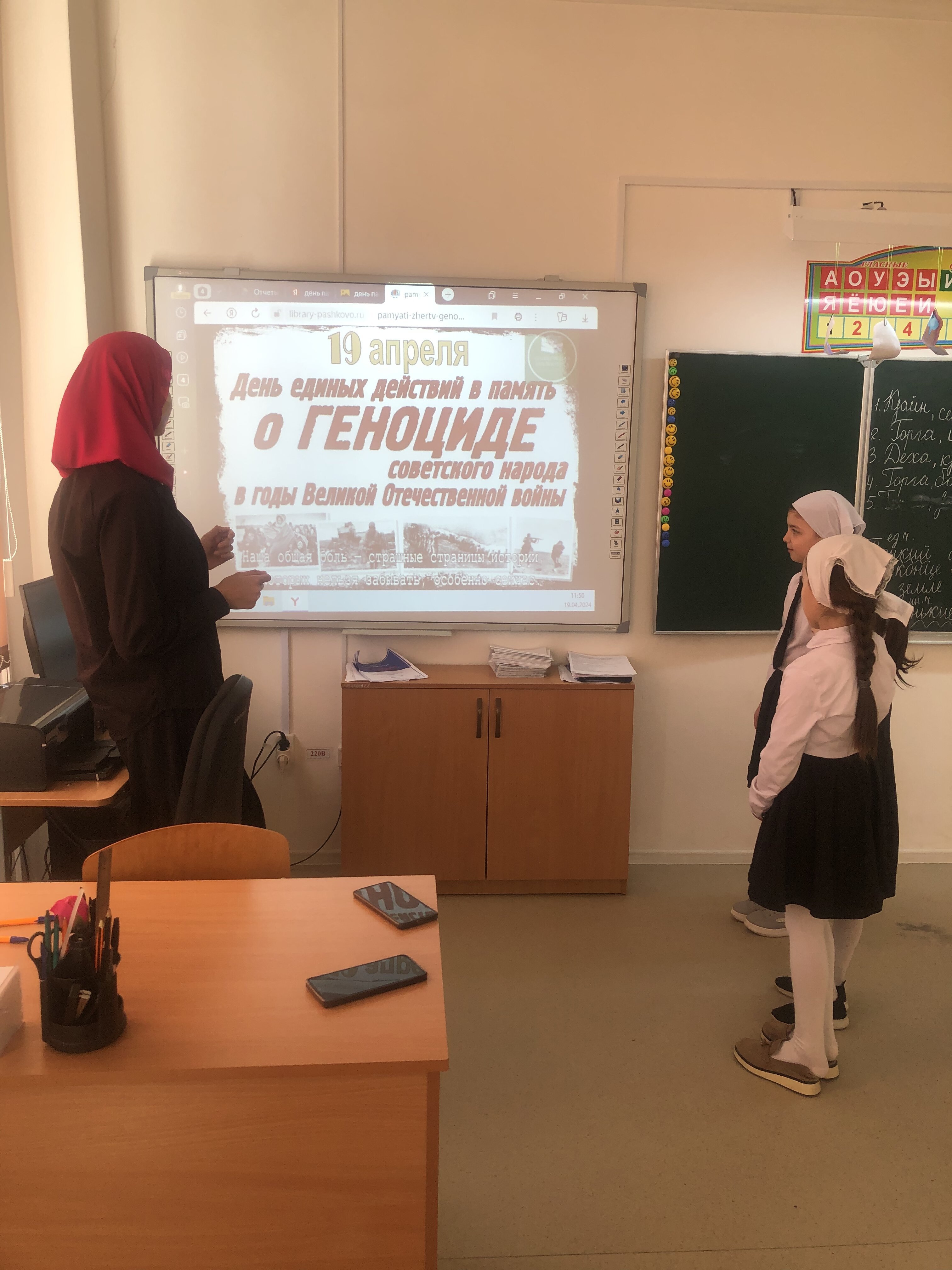 19.04.202519 апреля 2025г. в рамках реализации национального проекта «Образование» в МБОУ «Курчалоевская СШ 2» провели мероприятие на тему “ День памяти о геноциде советского народа нацистами и их пособниками в годы Великой Отечественной войны”, среди учащихся начального звена. Организатором выступила советник директора по воспитанию и взаимодействию с детскими общественными объединениями Эльмурзаева Мадина Хожхамедовна и учитель истории Абуев Ислам Казбекович Этот день направлен на сохранение памяти о жертвах Холокоста в советском Союзе и подчеркивает важность уважения к человеческой жизни и достоинству. Он призывает к объединению усилий общества, государства международного сообщества в борьбе с ненавистью, расизмом, ксенофобией и другими формами нетерпимости.День единых действий в память о геноциде советского народа нацистами играет важную роль в сохранении памяти о жертвах Холокоста в Советском Союзе и призывает к объединению усилий общества, государства и международного сообщества для борьбы с ненавистью, расизмом, ксенофобией и другими формами нетерпимости.Ребята узнали много нового о своей родины, что перелил свой народ в самые тяжёлые времена. Подчеркнули важность «Дня единых действий в память о геноциде советского народа нацистами» как способа сохранения памяти о страшной трагедии Холокоста в Советском союзе и призывают к действиями для предотвращения подобных ужасов в будущем.